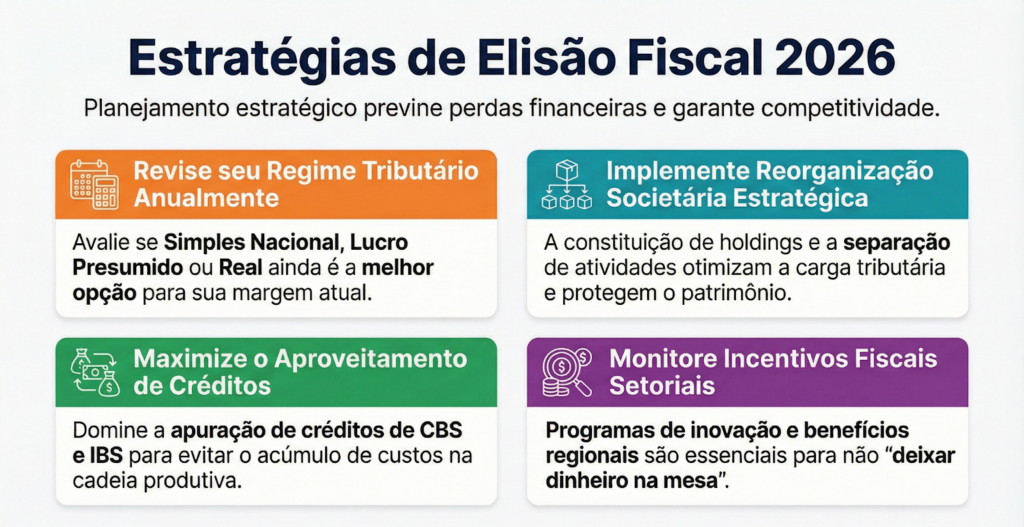 Nesse contexto, estratégias de elisão fiscal em 2026 precisam considerar: